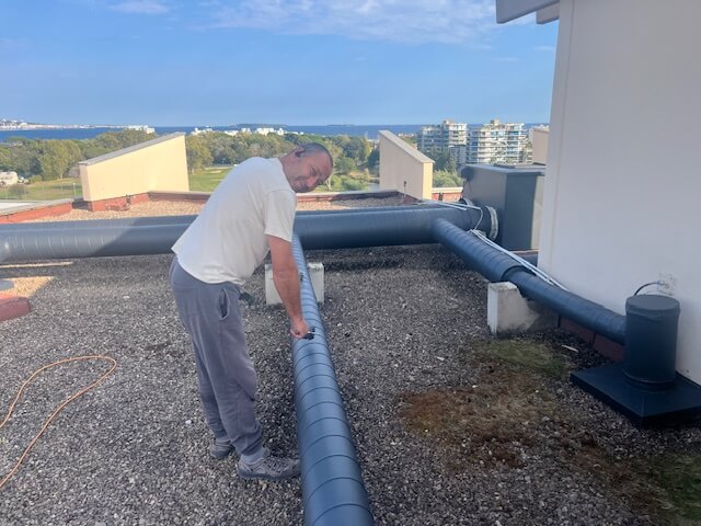Les gaines de ventilation sur les toits avaient grand besoin d’entretien !