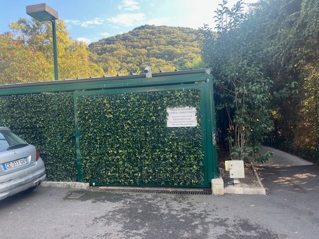 Les travaux sont terminés. Cet aménagement permet aux résidents du bâtiment Accacias de plus avoir une vue déplaisante sur nos poubelles. Pour éviter les dépôts sauvages provenant de l’extérieur, l’entreprise Micromatix a mis en place un portail dont l’ouverture se fait uniquement à l’aide des badges piétons fournis à tous les résidents. C’est pour cela que nous demandons à tous les résidents lors de son utilisation de fermer la porte coulissante jusqu’à son verrouillage complet…
